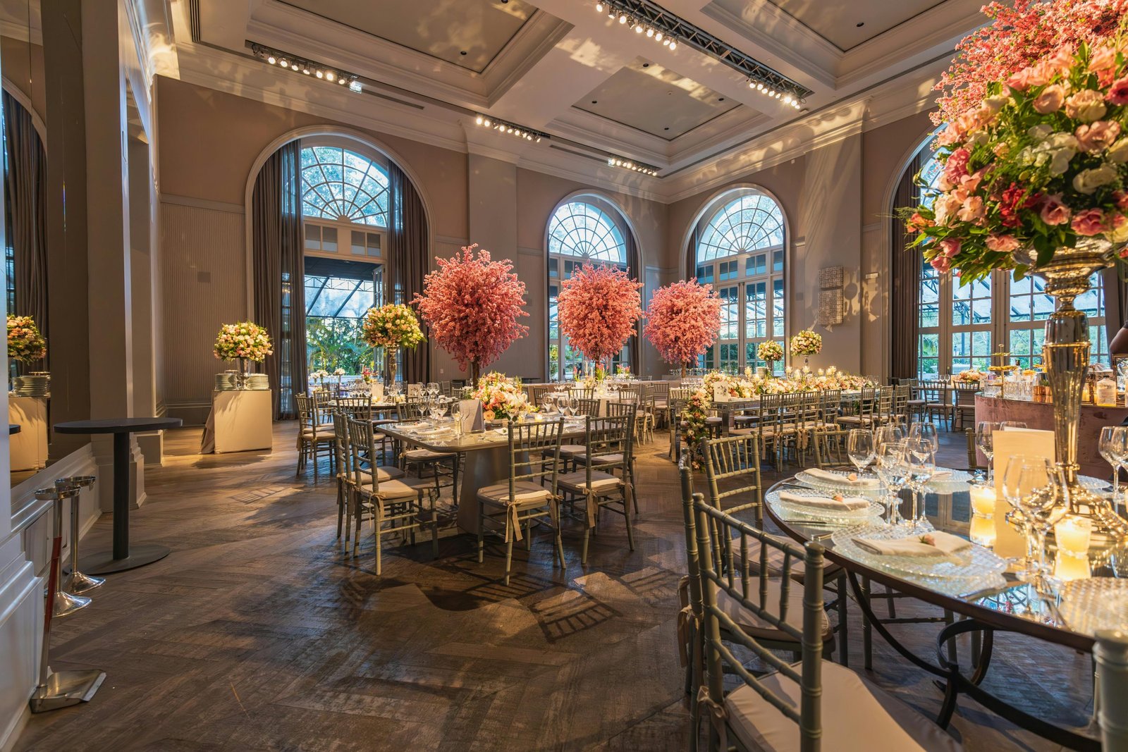 Create an unforgettable ambiance with our elegant wedding hall floral décor.