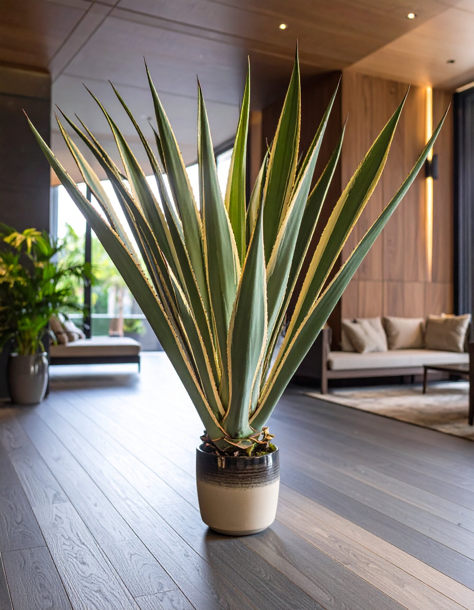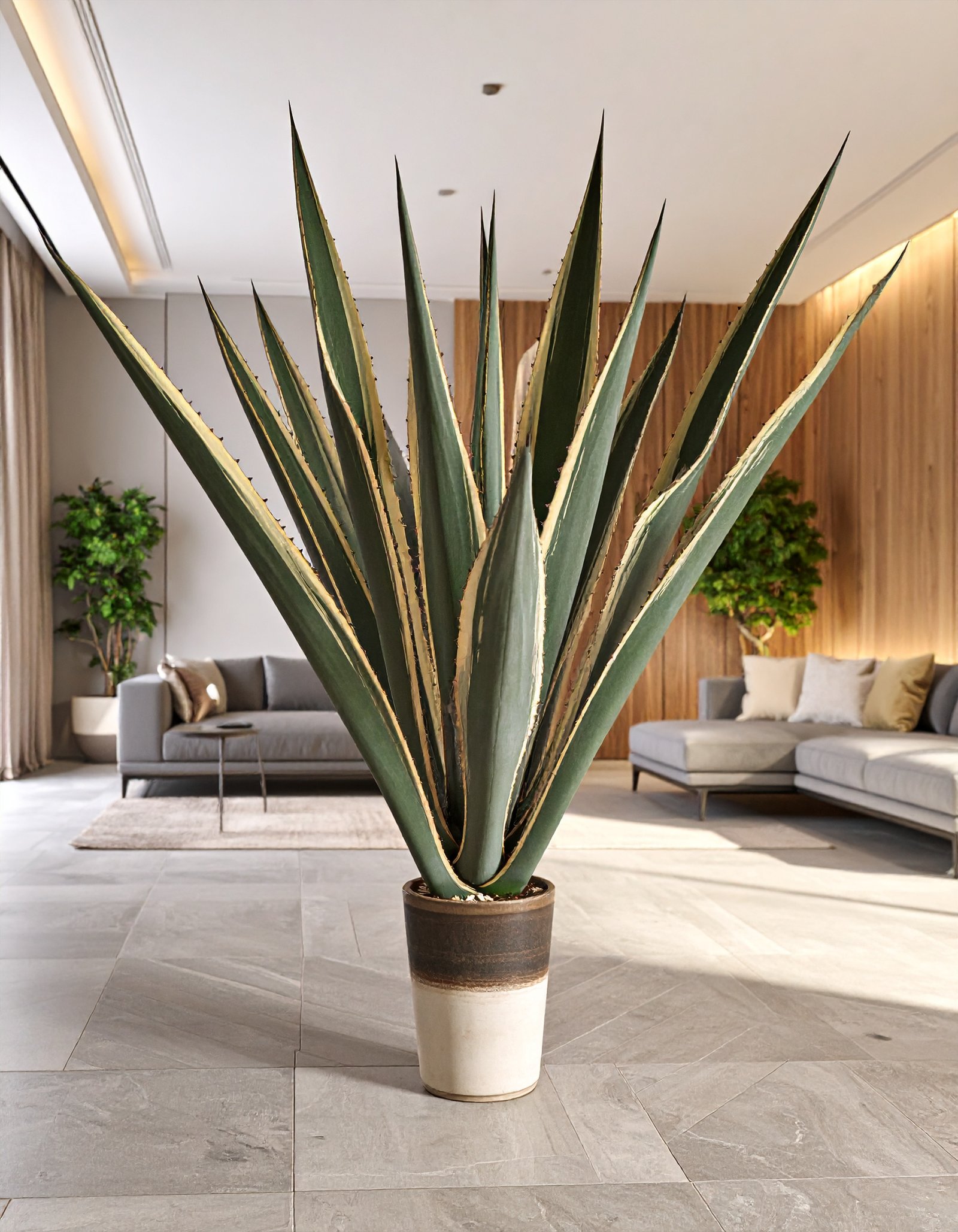 A striking 120 CM Big Green/White Agave Lophantha with 21 realistic leaves, perfect for adding bold, maintenance-free greenery to homes, offices, or commercial spaces.