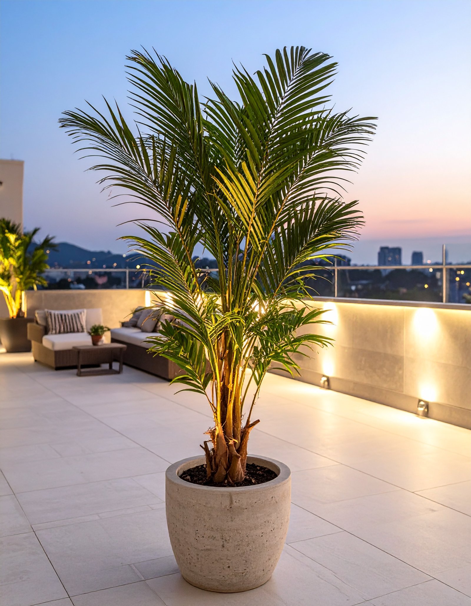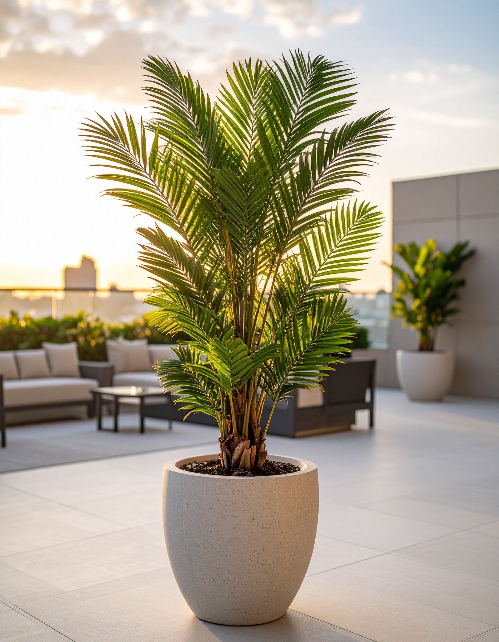 This 165 CM Plastic Areca Palm Tree with 15 UV-protected leaves brings effortless tropical charm to any indoor or semi-outdoor setting.