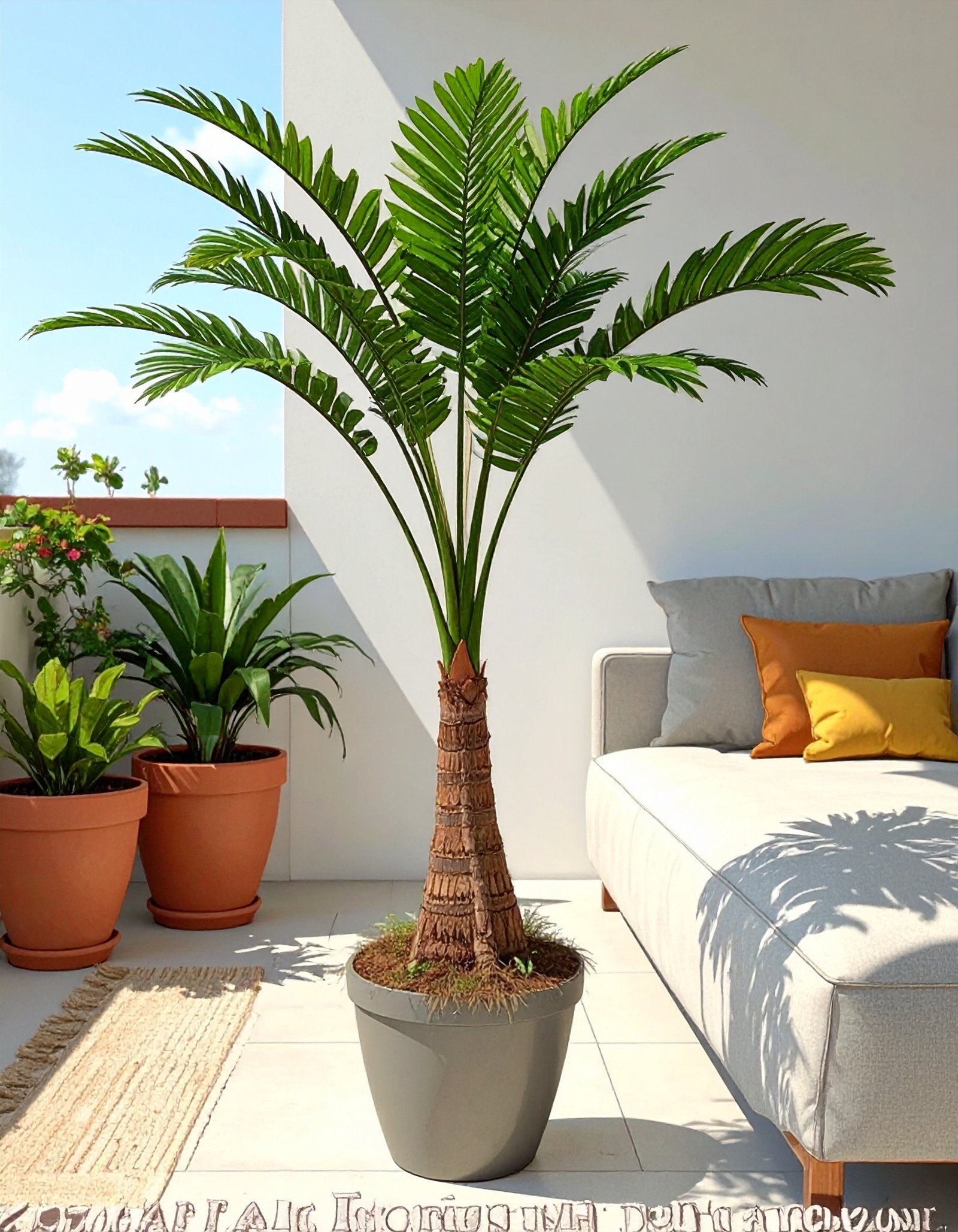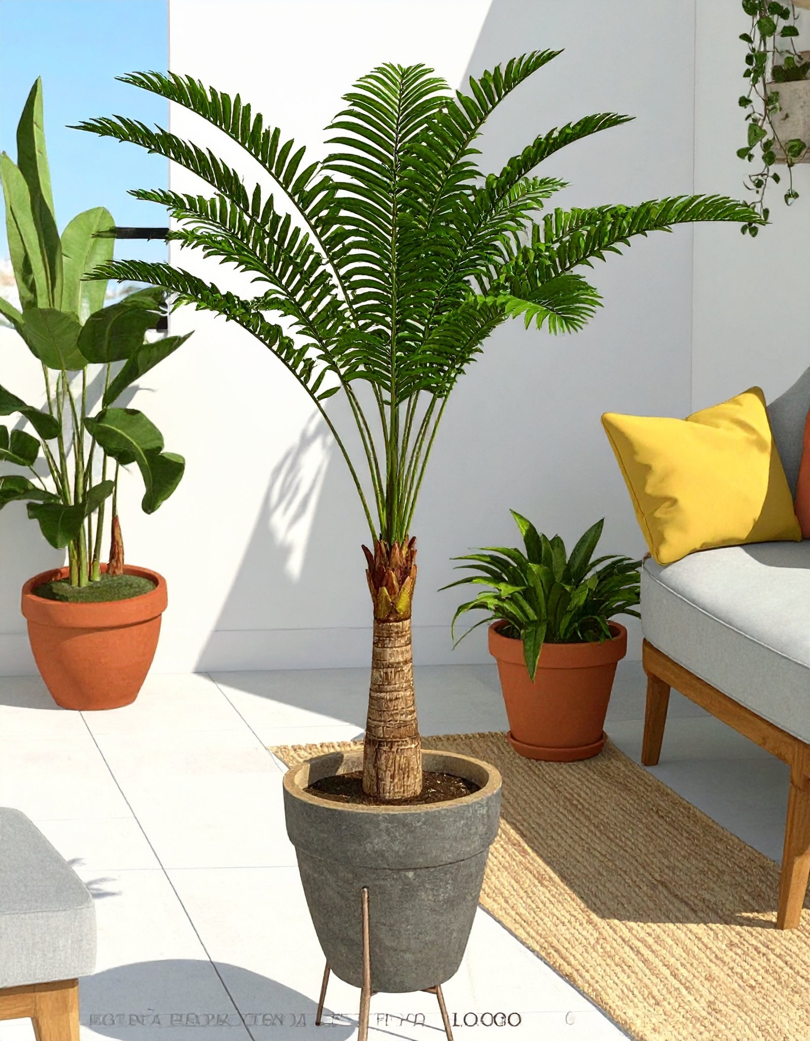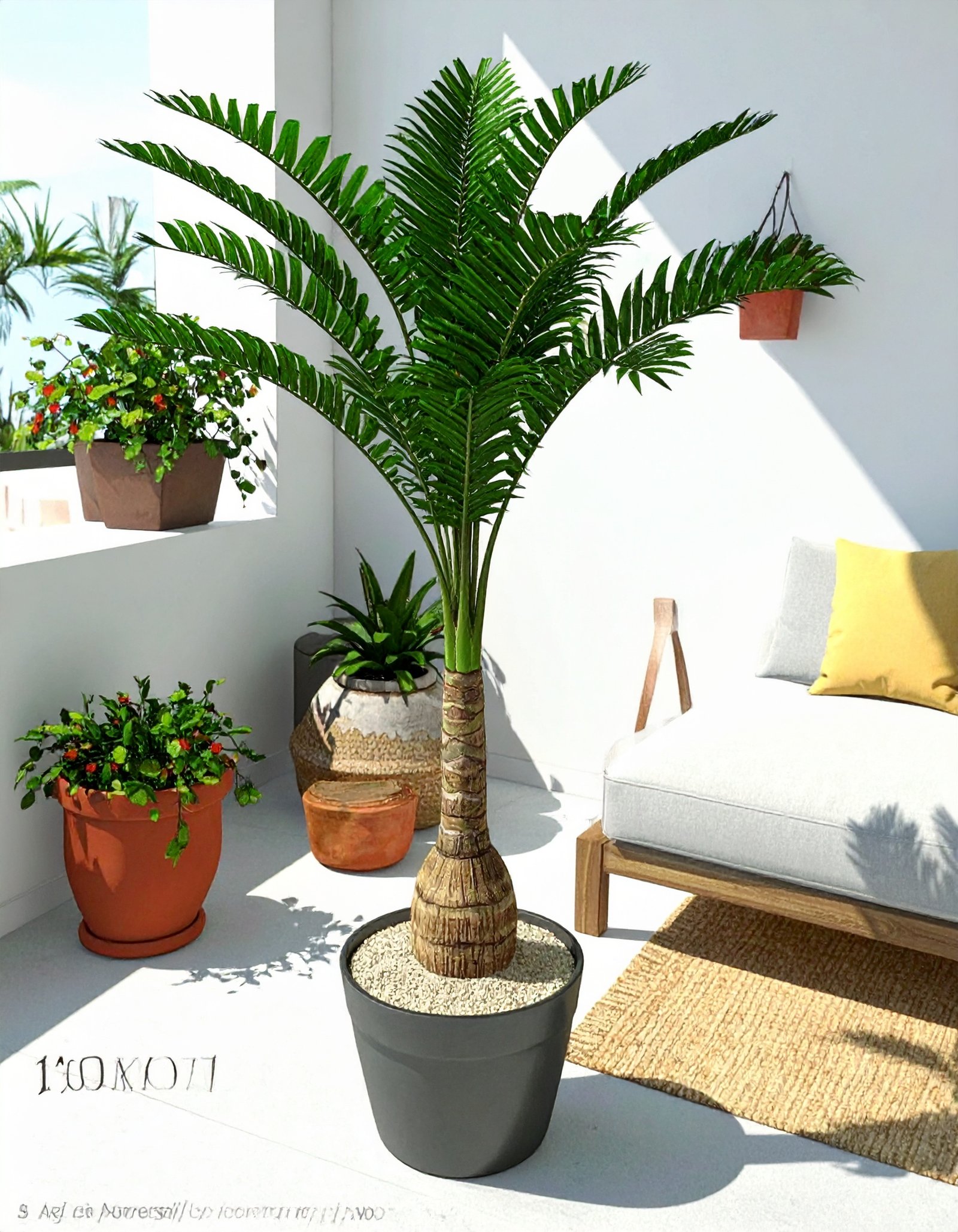 The distinct bottle-shaped trunk adds a sculptural aesthetic, making it a standout piece in lobbies, living rooms, patios, or office corners. Its compact size ensures it fits seamlessly into smaller spaces while still making a bold visual impact.