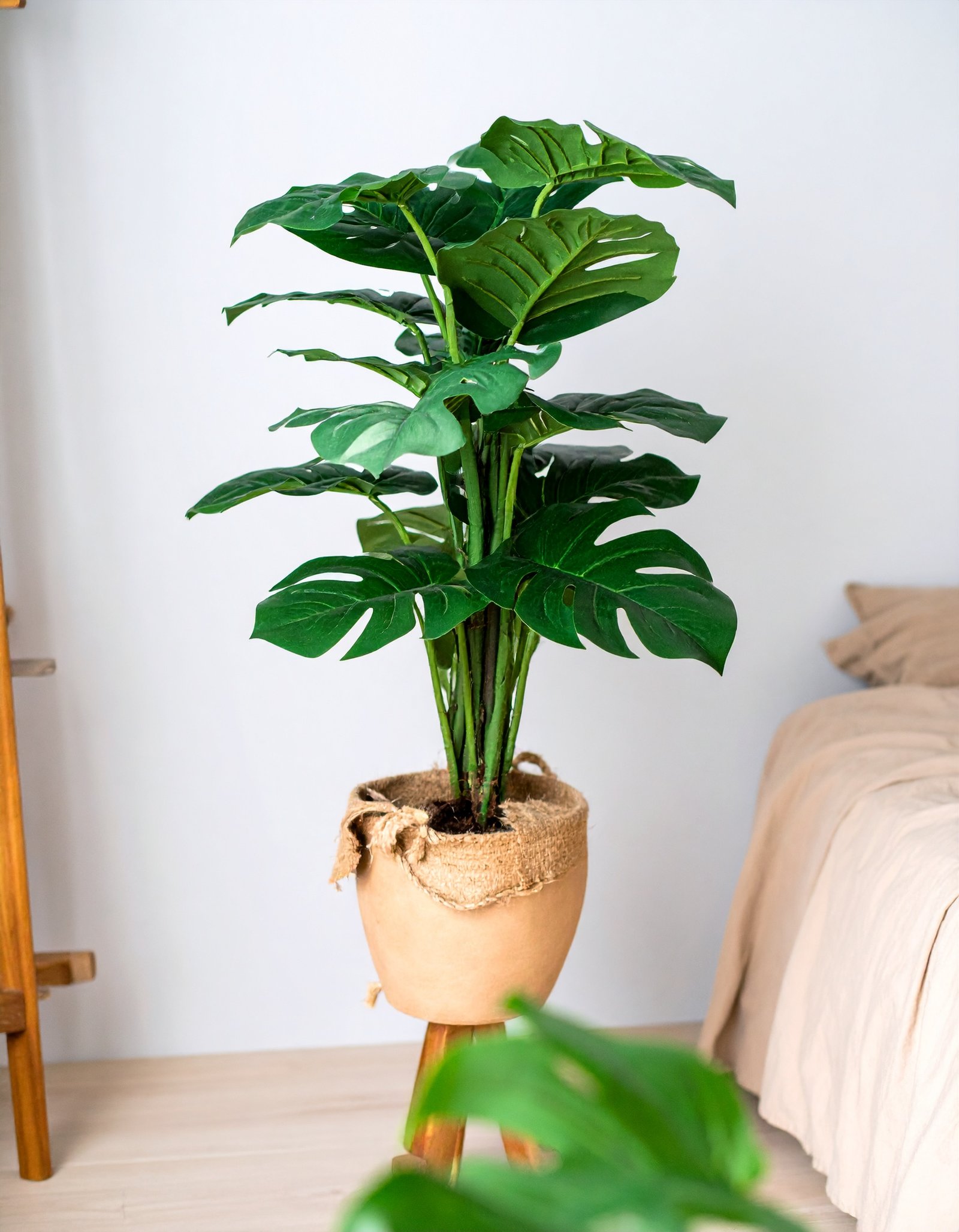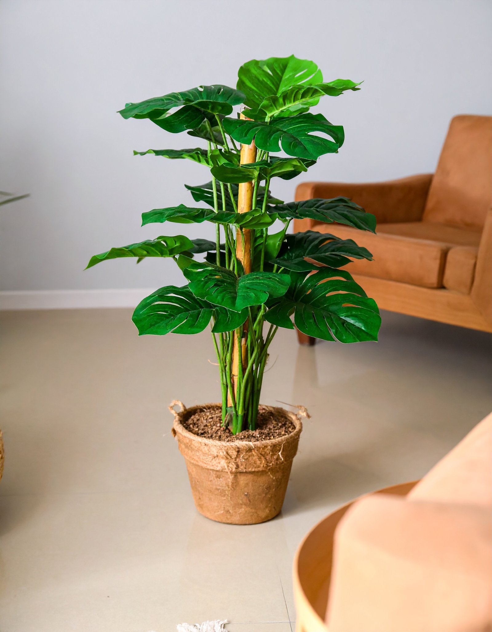 Add a refreshing botanical feel to your space with this 3 FT (90 CM) Split Philo Coir Plant. Featuring 18 intricately designed real-touch leaves, it mimics the beauty of natural philodendron foliage with zero upkeep. The coir base gives it a rustic charm, ideal for indoor décor, office spaces, or gifting.