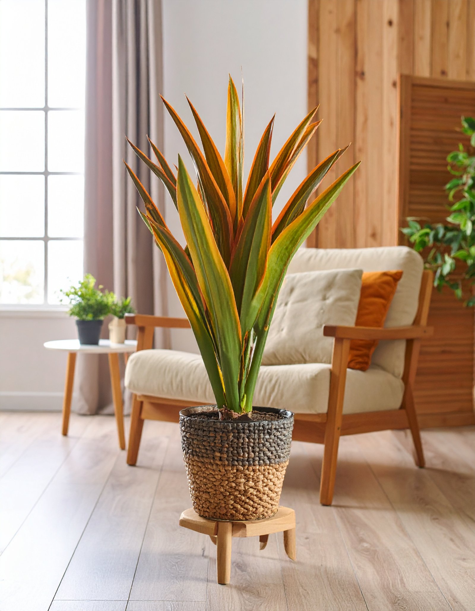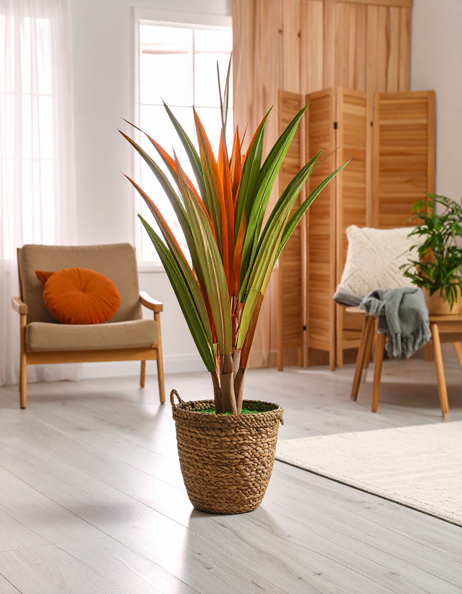 Bring a splash of tropical warmth into your space with this 32″ 1 X 1 Real Touch Dracaena Plant, featuring a lifelike blend of green and orange foliage. With a height of 80CM, it’s ideal for smaller spaces, desks, counters, and window sills.