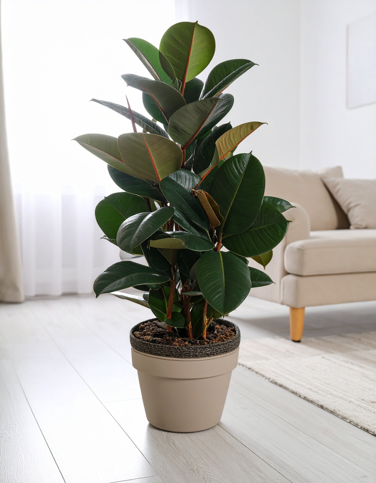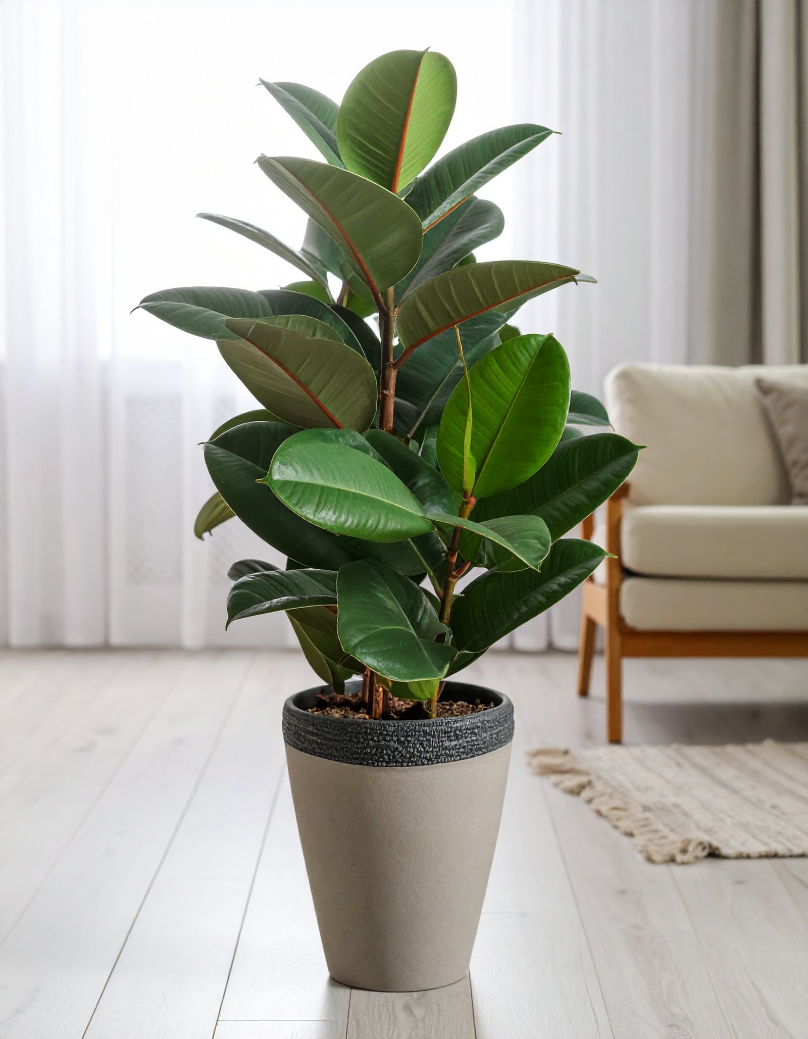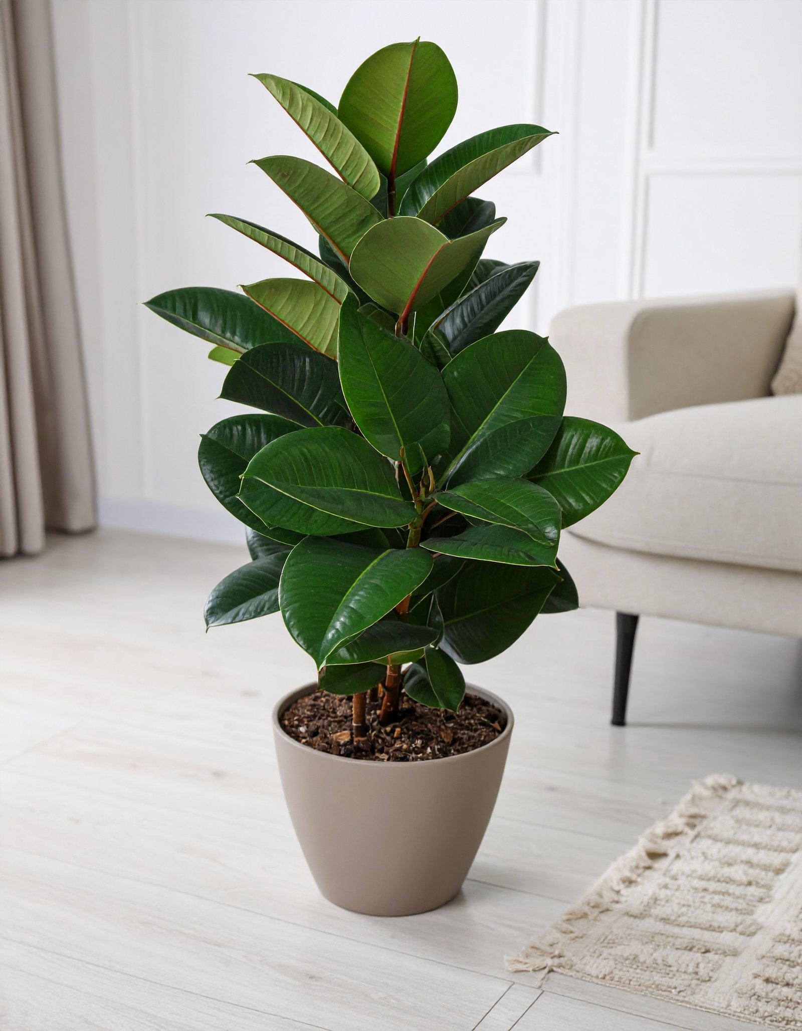 A charming Green Rubber Plant with 31 lifelike leaves, standing at 80CM, perfect for adding natural elegance to compact spaces.
