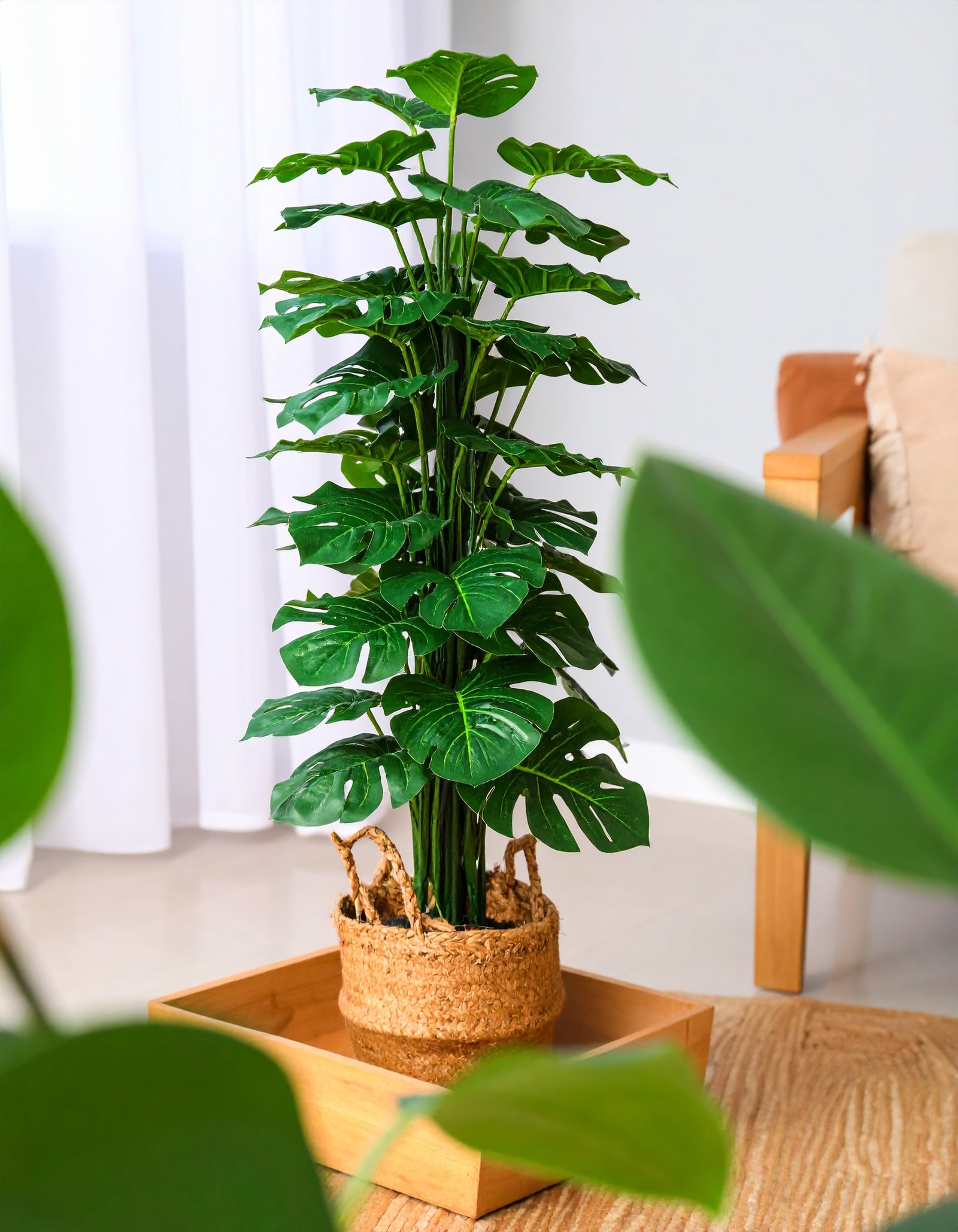 This artificial monstera brings a fresh and vibrant aesthetic without the need for sunlight or maintenance. Whether you’re styling a living room corner, a retail display, or an office lobby, this plant creates an instant statement with its lifelike presence.