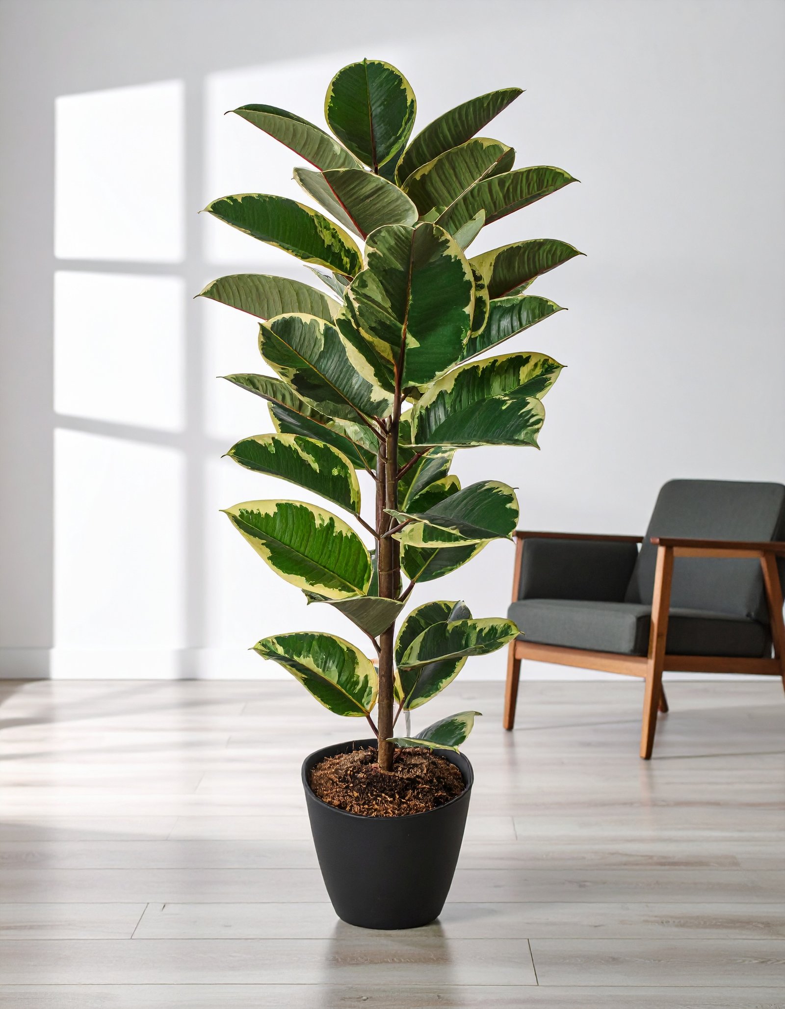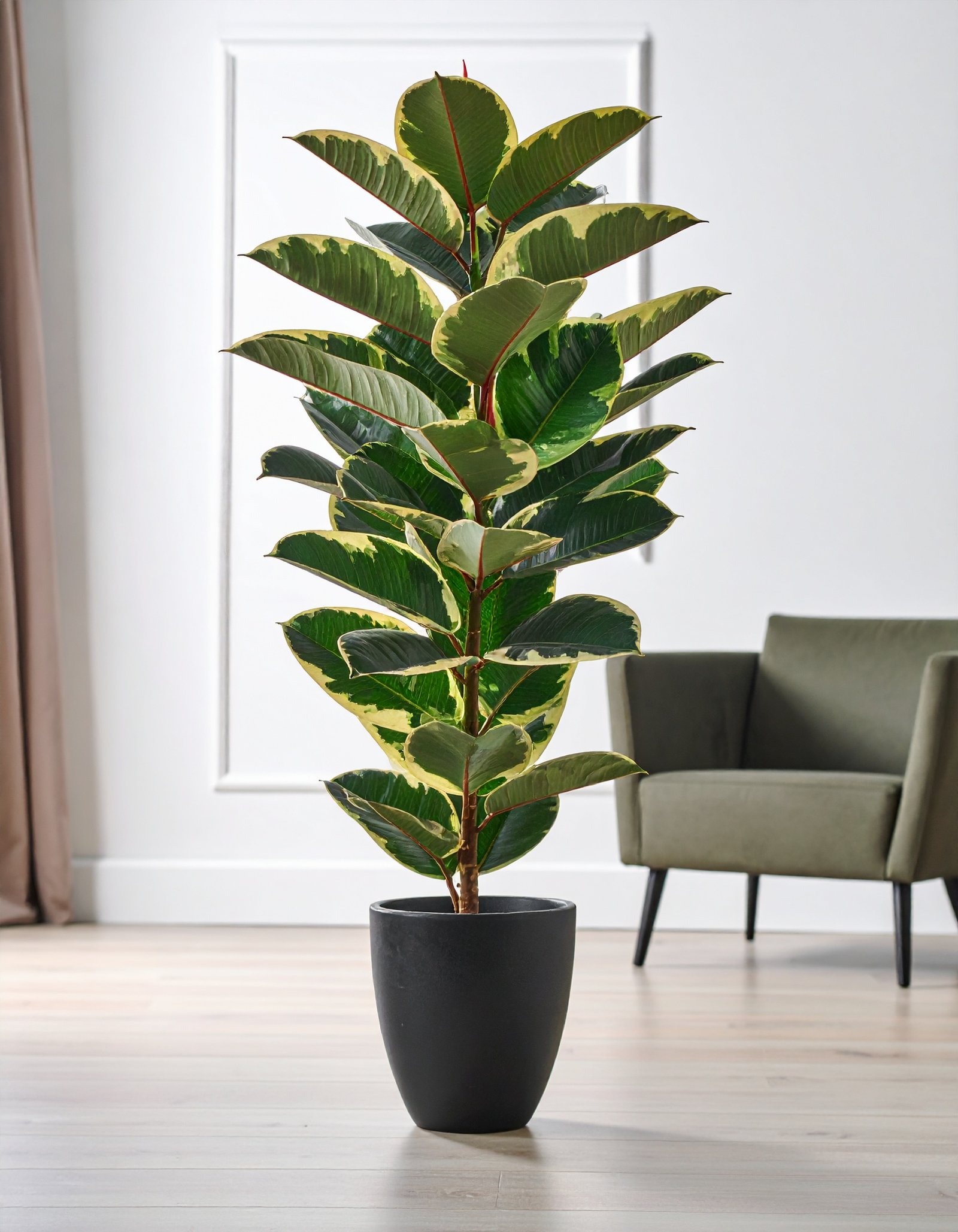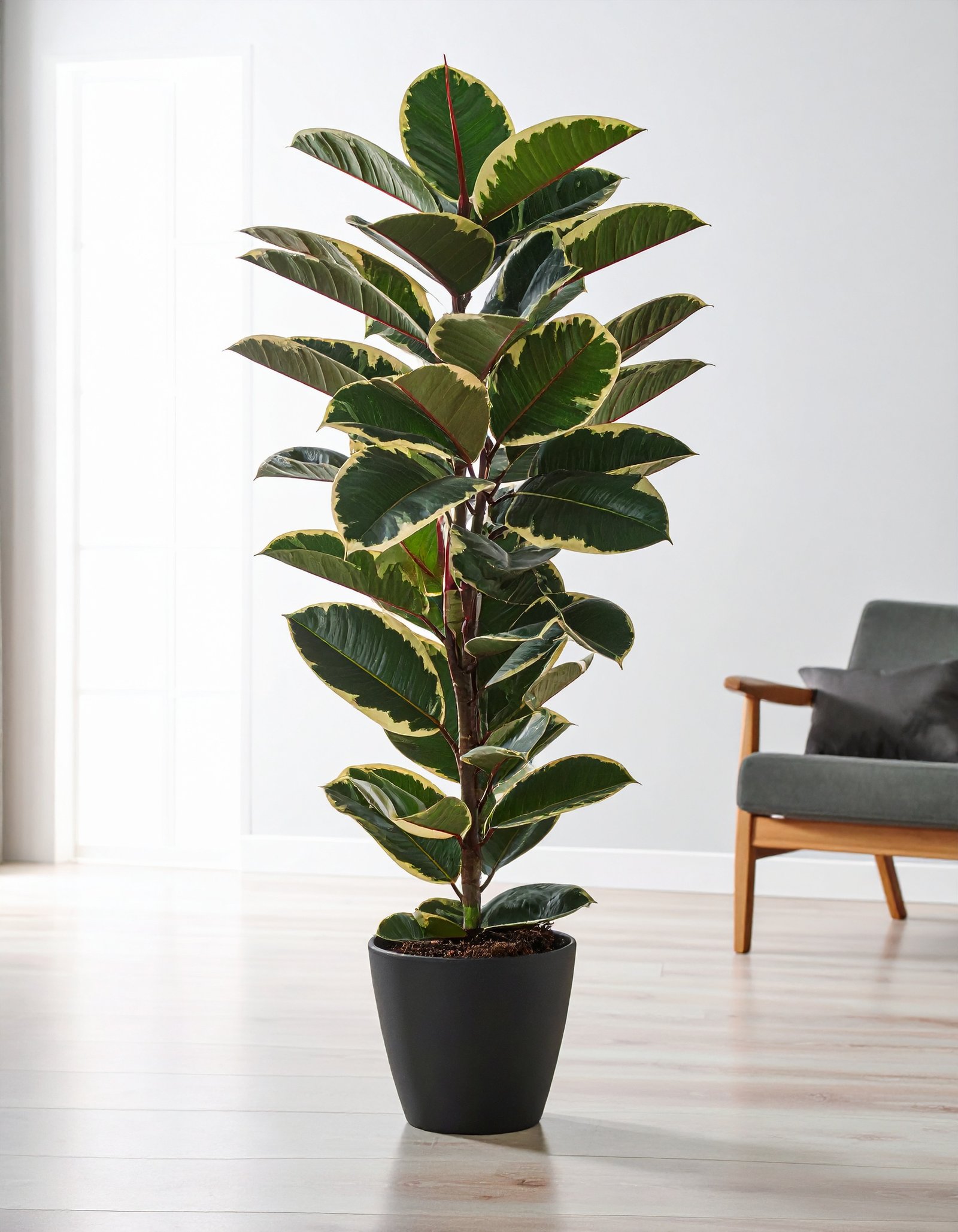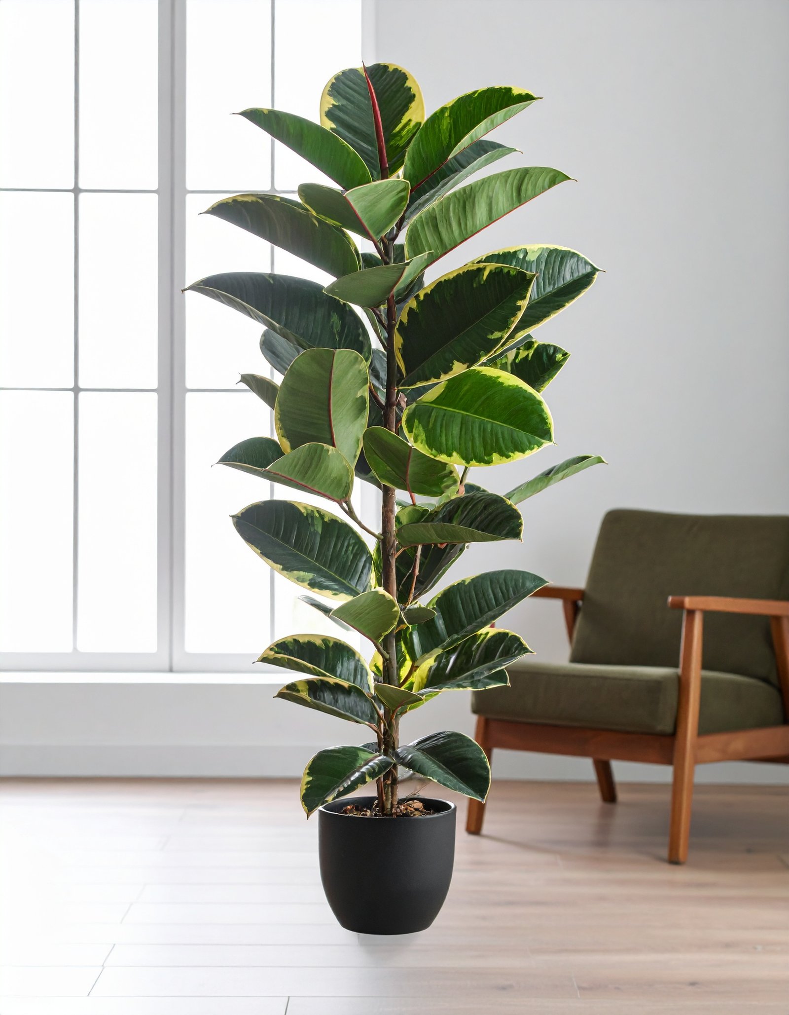 Enhance your interiors with this elegant 40″ artificial Shaded Rubber Plant, featuring a 2 X 1 leaf formation and 40 premium-grade leaves in rich, dual-toned shades that mimic real rubber plant foliage.