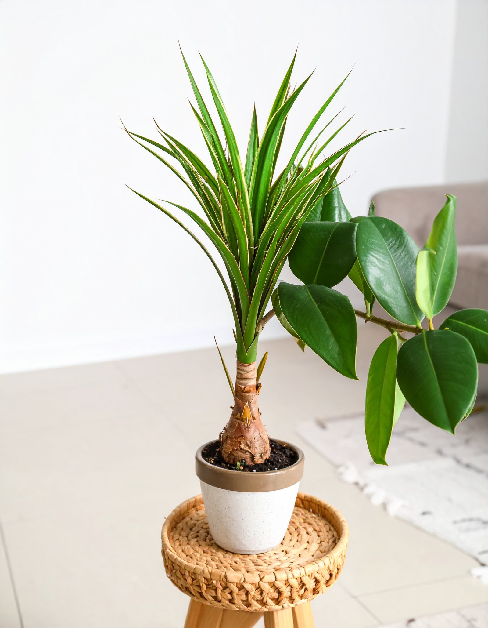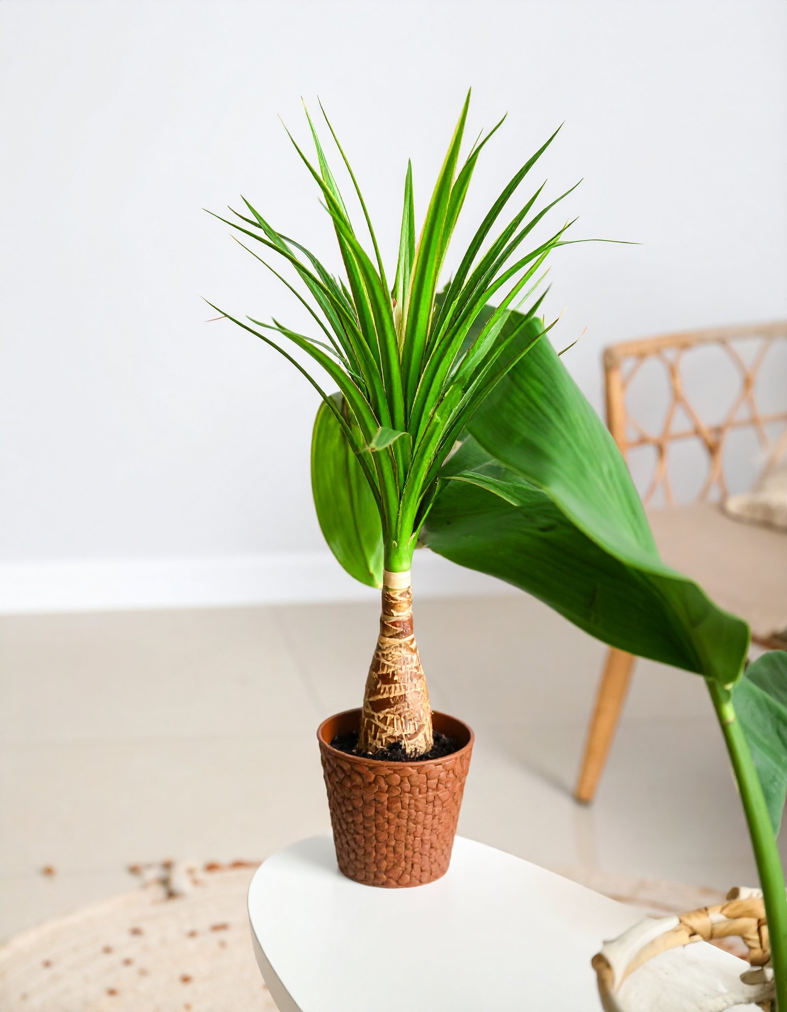 This compact yet eye-catching artificial plant delivers freshness and sophistication without the need for watering or sunlight.