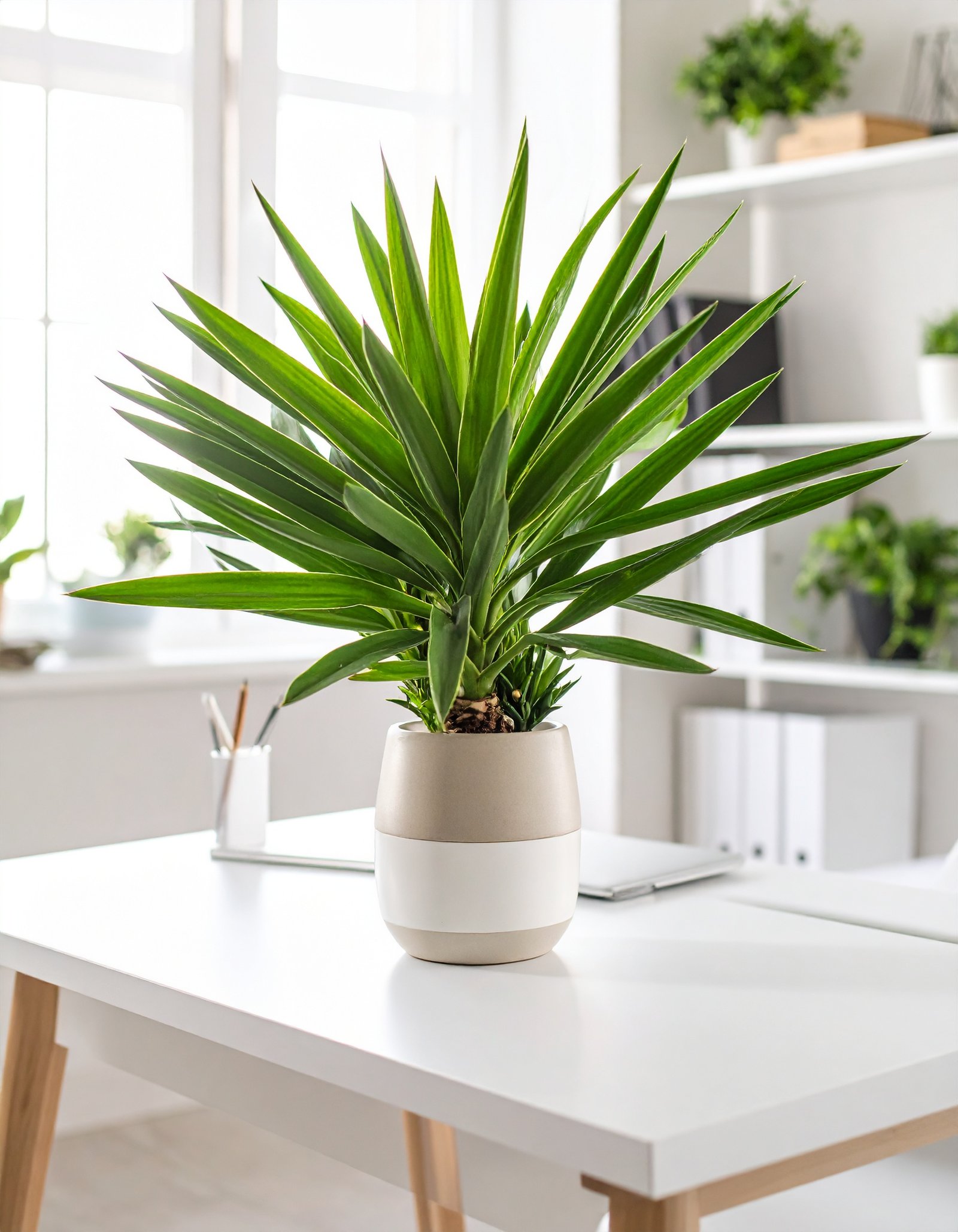 Add a touch of tropical elegance with this 45 CM Yucca Gloriosa artificial plant, featuring 49 lifelike leaves. Compact, stylish, and perfect for tabletops, desks, and small spaces.