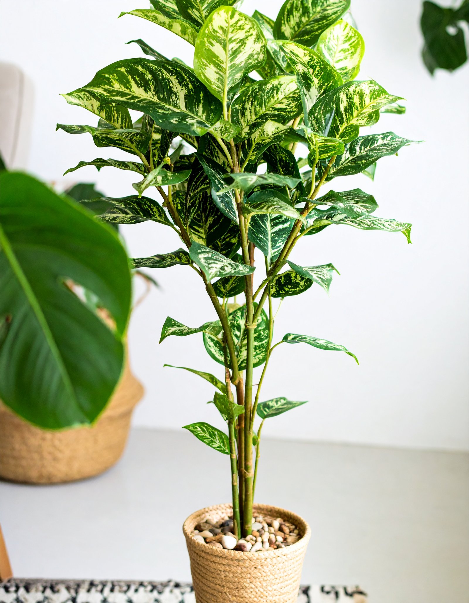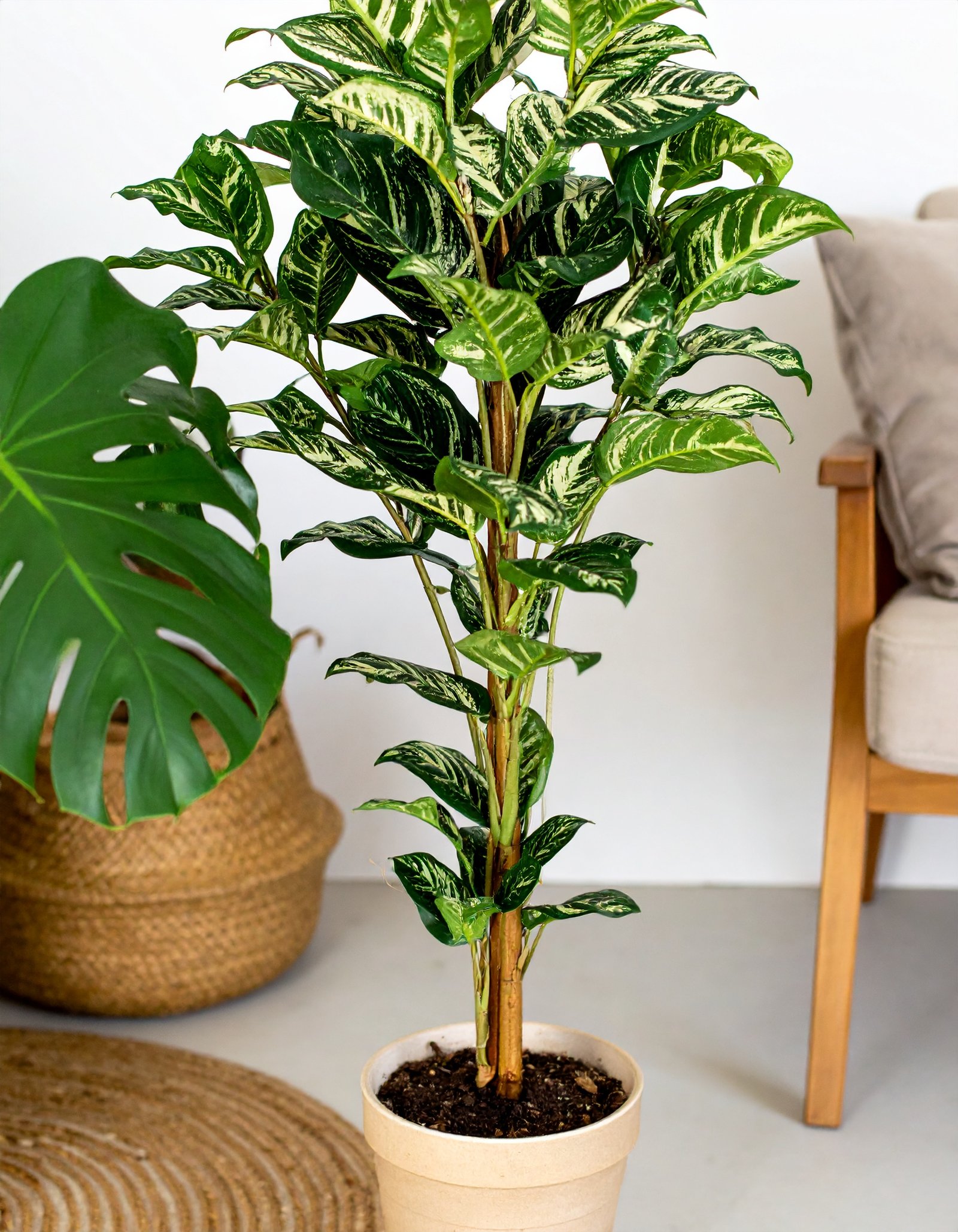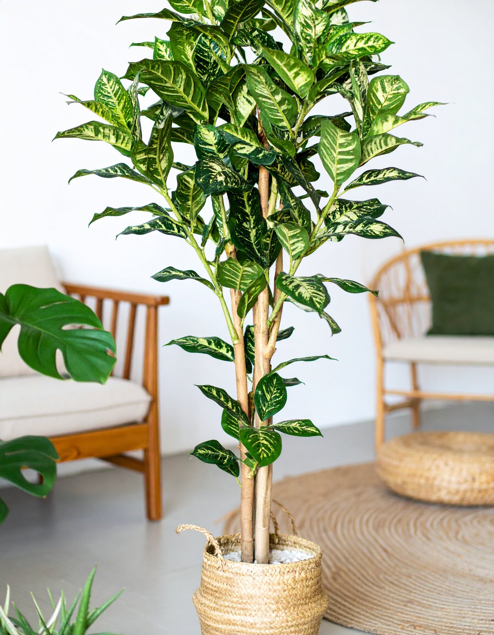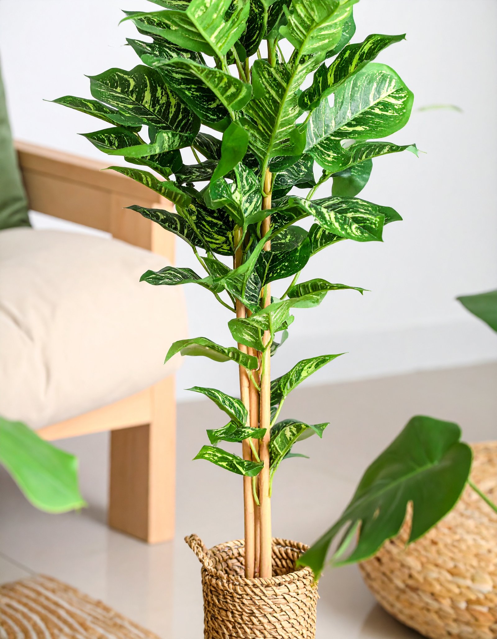 With its tall stance and eye-catching variegation, this plant stands out in living rooms, offices, luxury retail spaces, or reception areas. Enjoy the look of tropical greenery without the hassle of watering or pruning.