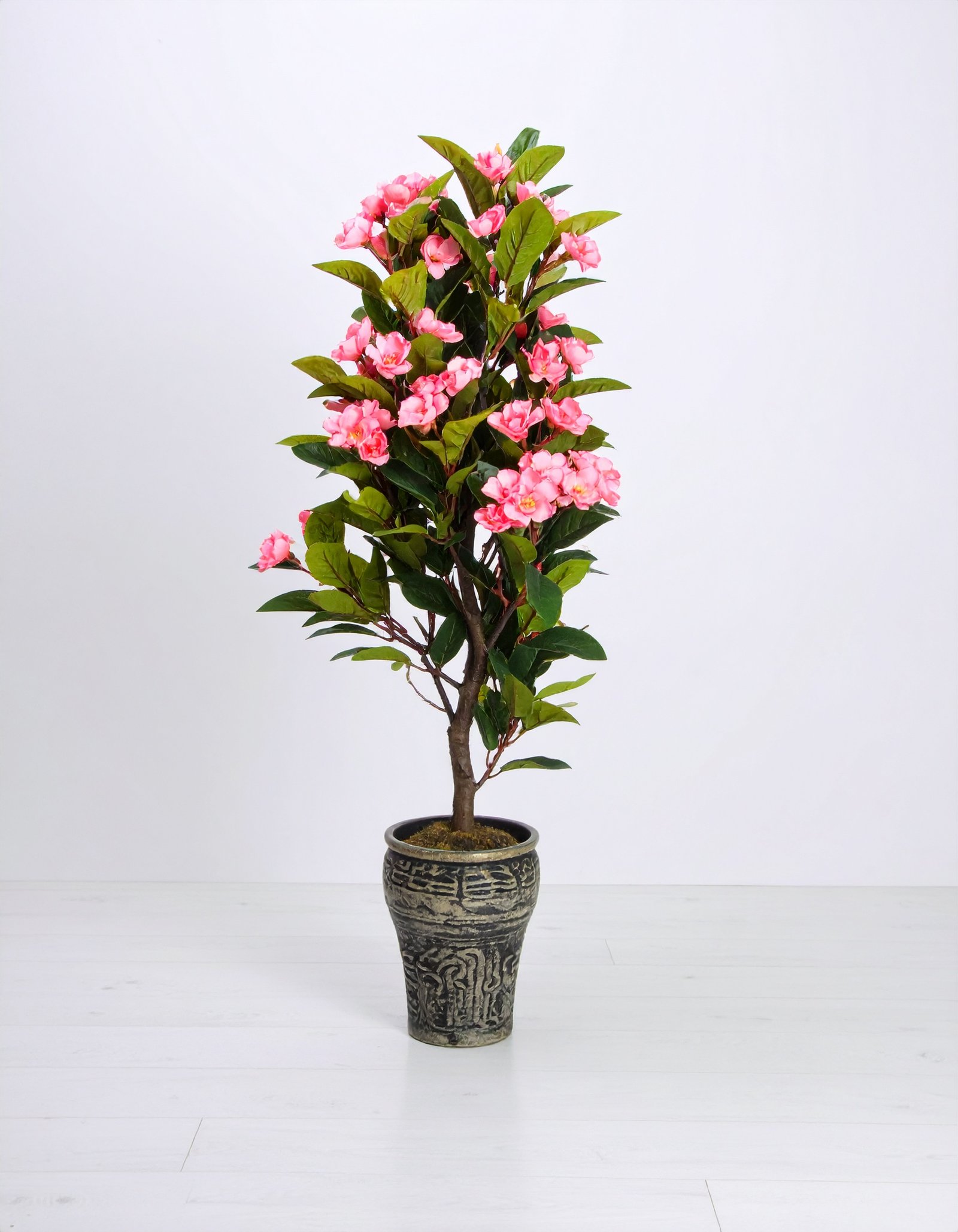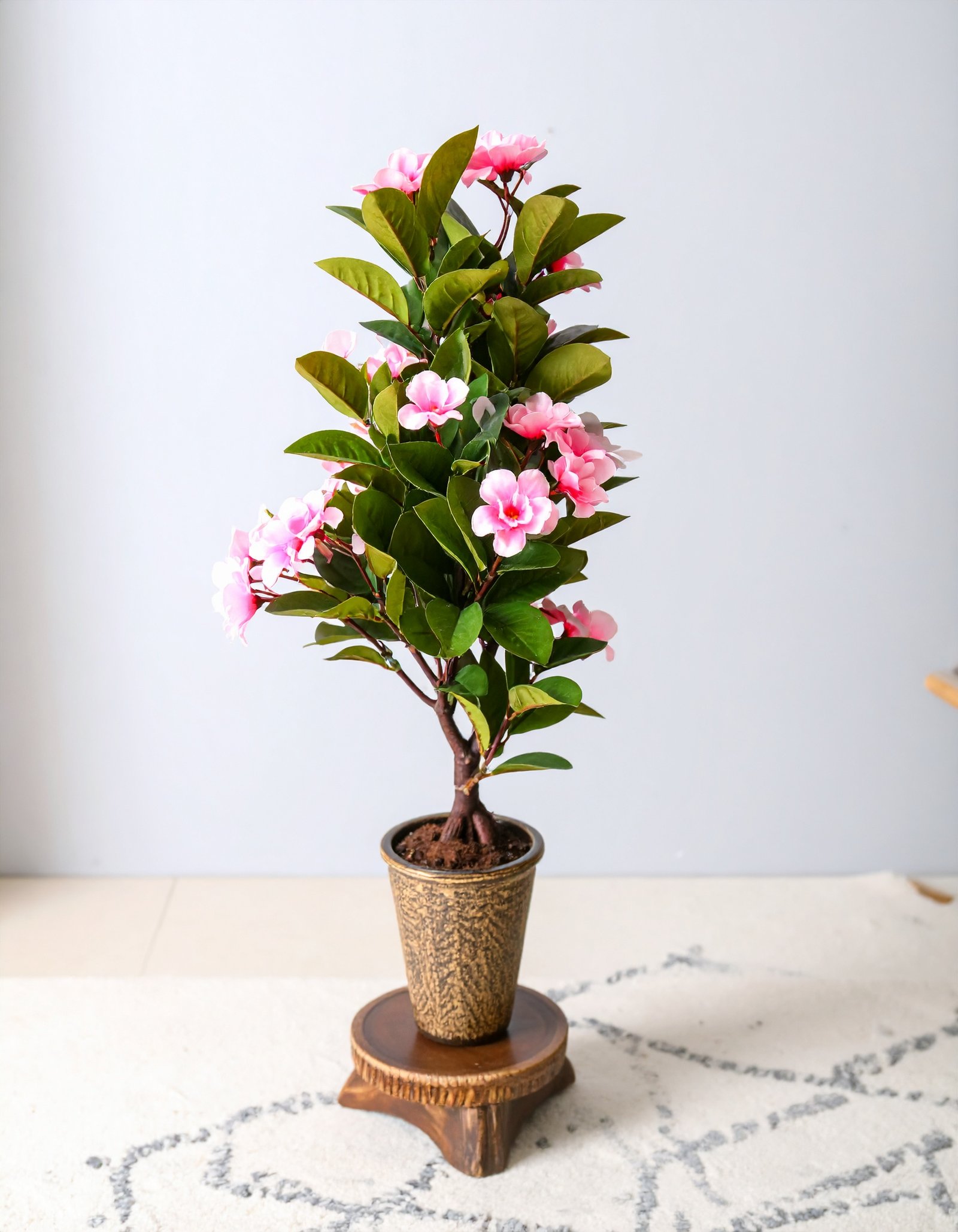 Brighten your interiors or outdoor settings with the natural grace of this 5 FT (150 CM) Frangipani Tree, showcasing pink blossoms and real-touch green leaves. The realistic detailing makes it perfect for enhancing home corners, patios, hotel lobbies, or festive events.
