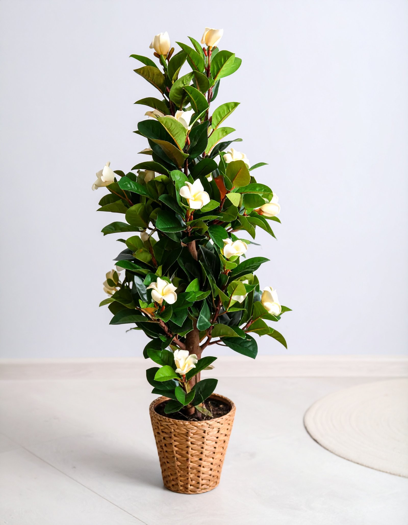 The lifelike fiber trunk and carefully crafted foliage create an authentic look, while the cream blossoms add an understated elegance. No watering, pruning, or sunlight needed — just effortless beauty, all year round.