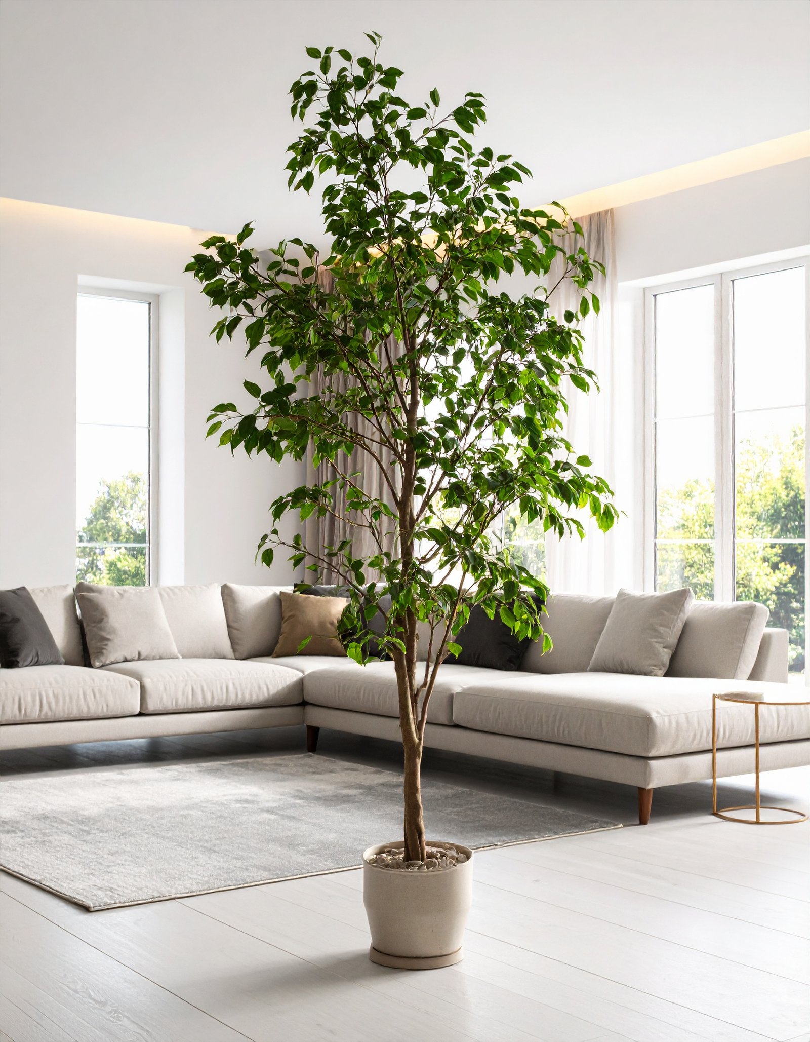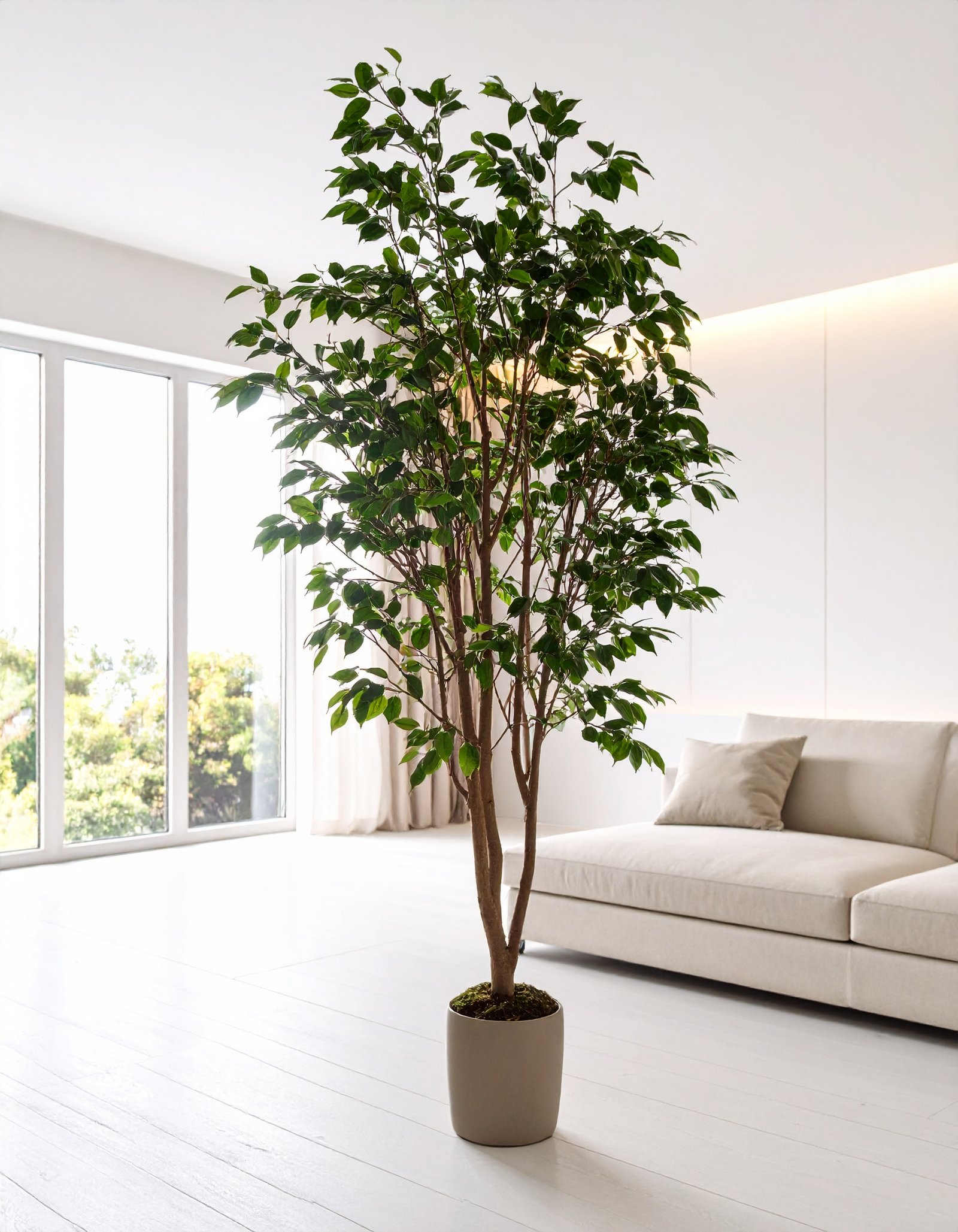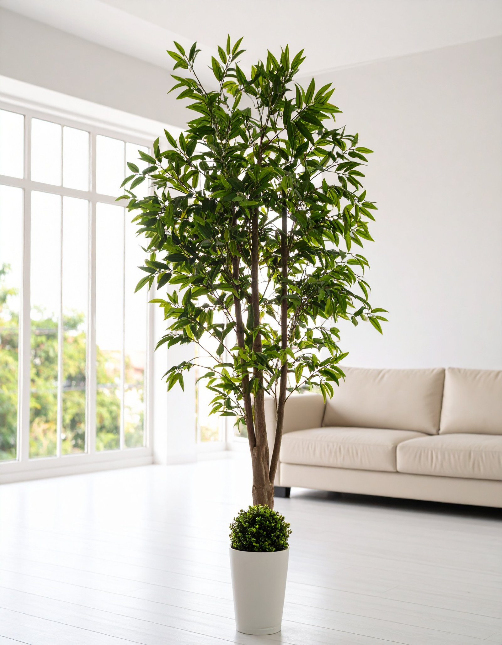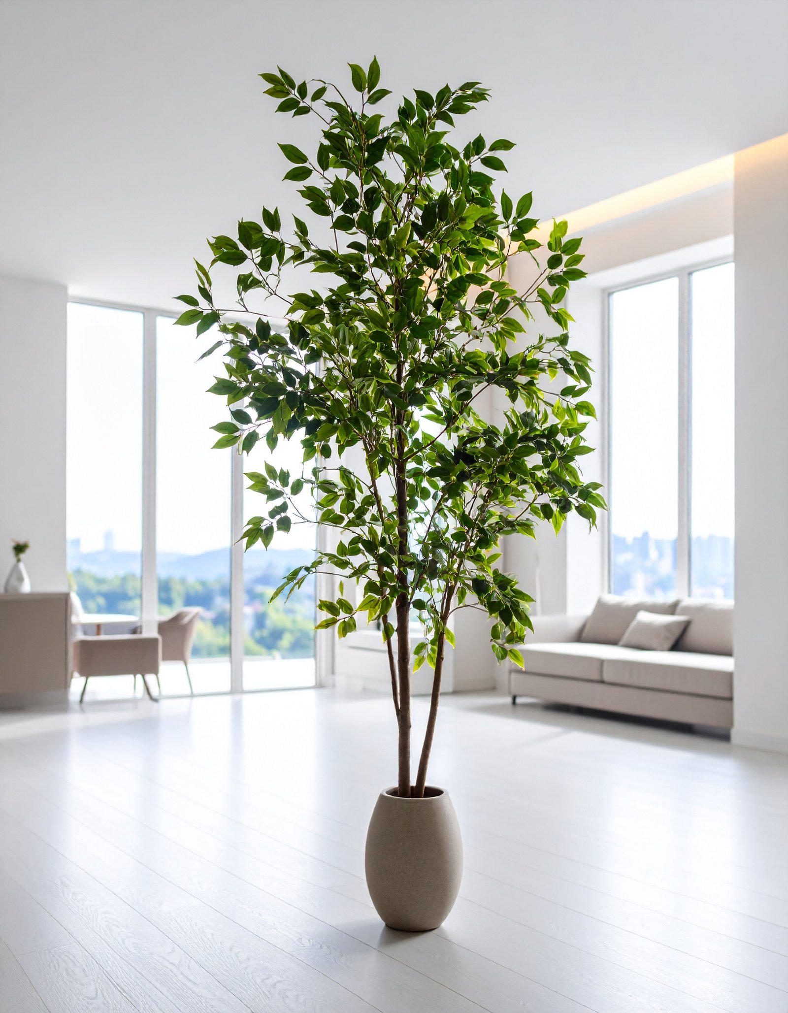 Perfect for living rooms, corporate spaces, hotel lobbies, or luxury decor settings, this artificial tree adds greenery without the hassle of maintenance—no watering, trimming, or sunlight required.