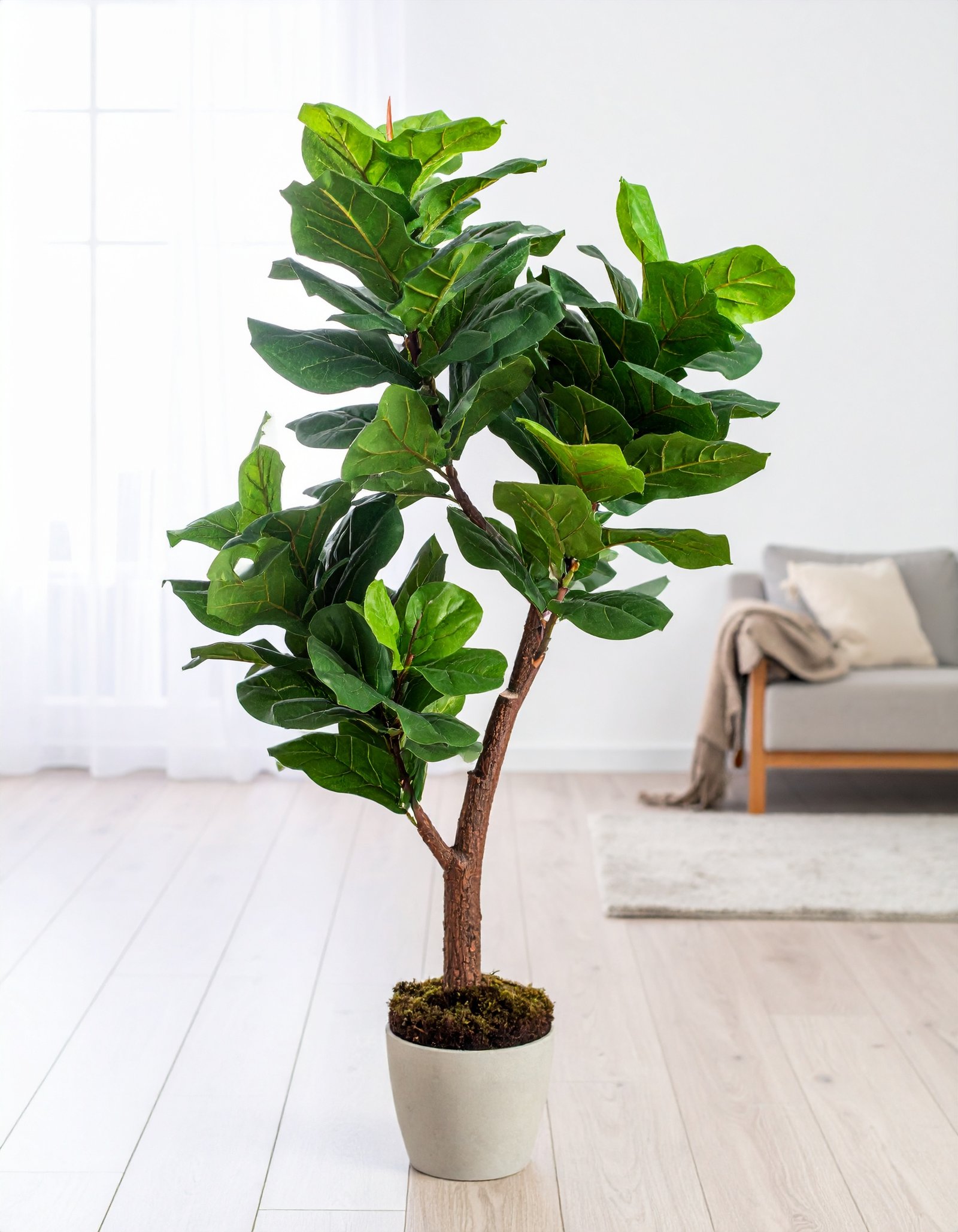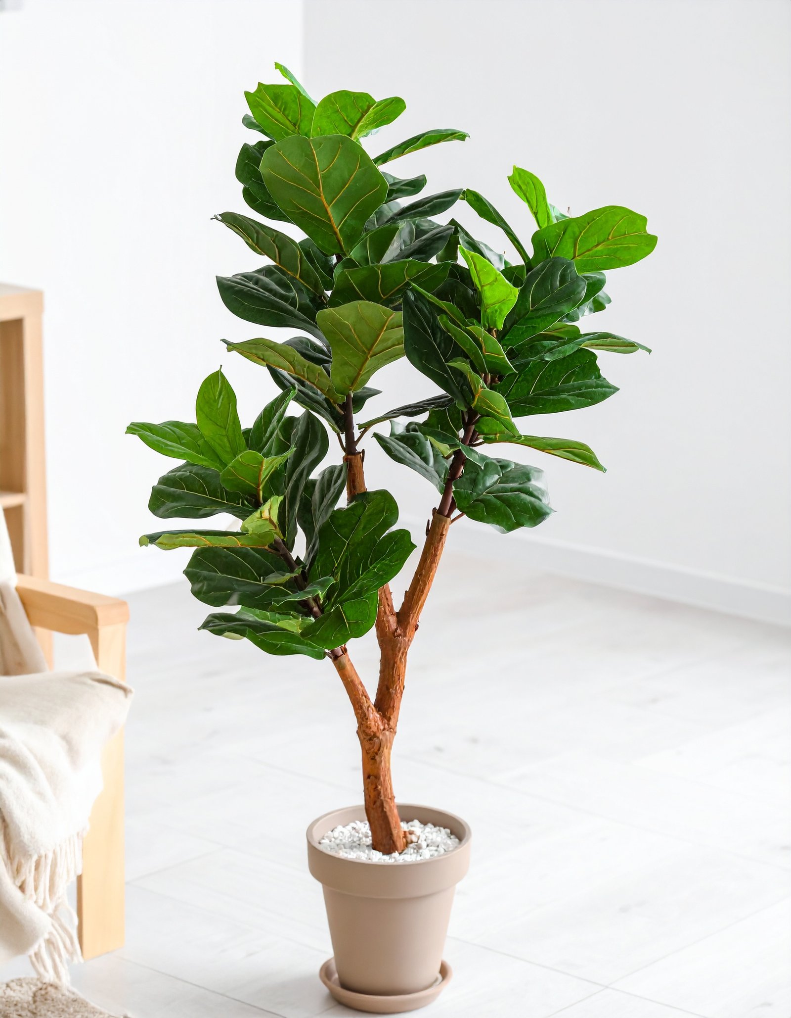 Upgrade your interiors with this lush 165CM Fiddle Leaf Fig Plant – featuring 93 dense leaves, a 3 x 1 stem design, and a natural-looking fiber trunk for ultimate realism.