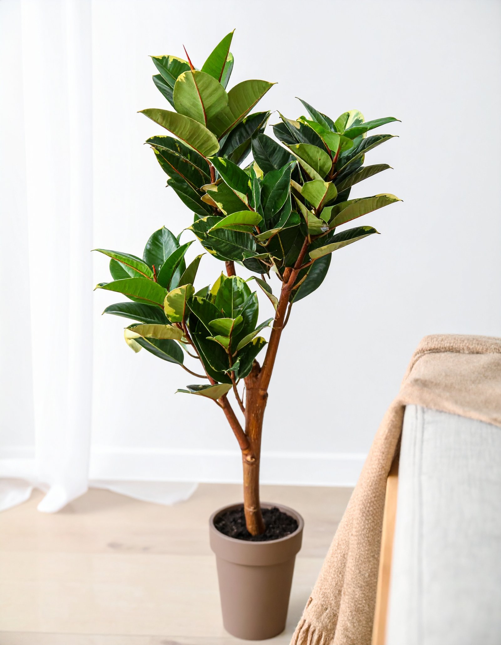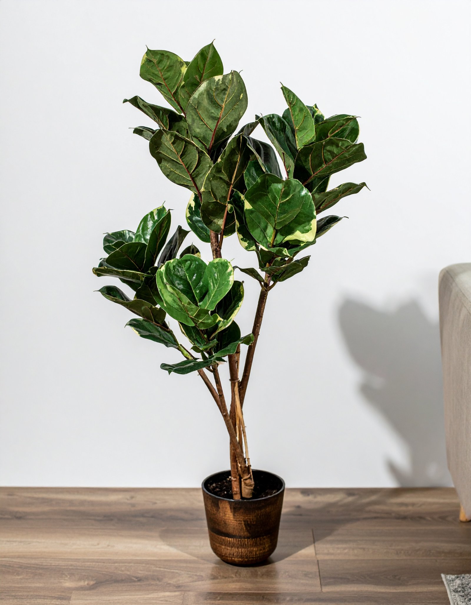 Bring bold greenery to your space with this 165CM Shaded Rubber Plant, featuring 93 dual-tone leaves and a realistic fiber trunk—a perfect maintenance-free decor solution.