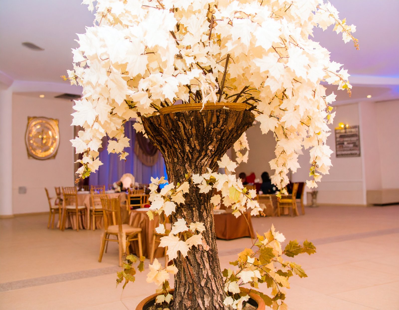 A striking 9 Ft Jumbo White Maple Tree with a sturdy fiber trunk. Perfect for enhancing large interiors with a clean and classy look. Height: 270 cm. Carton Quantity: 2 pcs.